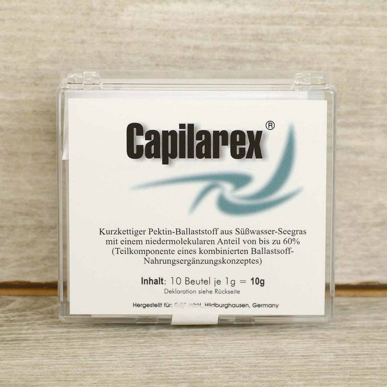 In einem aufwändigen technischen Verfahren aus dem Zosteracea-Schilfgras isoliert, ist Capilarex ein kurzkettiger Pektin-Ballaststoff mit einem niedermolekularen Anteil von bis zu 60 %. Niedermolekulares Pektin zeichnet sich durch eine besondere Bindungsfähigkeit für unerwünschte Stoffe aus, deren Aufnahme in den Körper es – wie viele andere Ballaststoffe – zum Teil reduzieren kann.