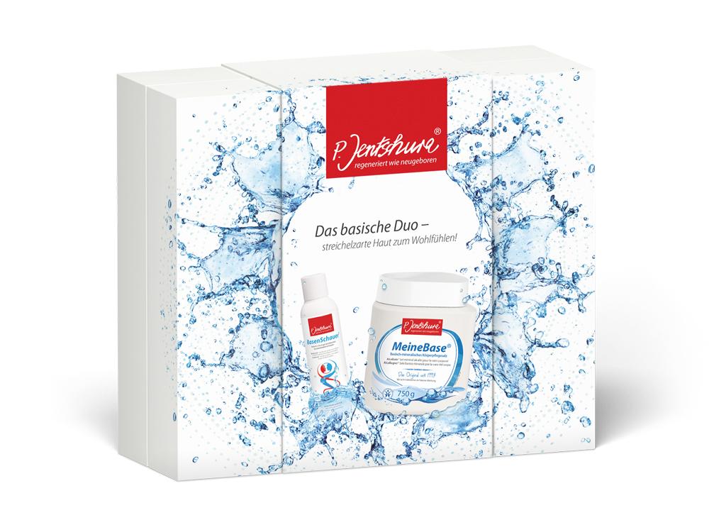 Jentschuras neue Geschenkbox: MeineBase 750g und BasenSchauer 100ml. Überraschen Sie Ihre Lieben mit natürlich basischer Körperpflege!