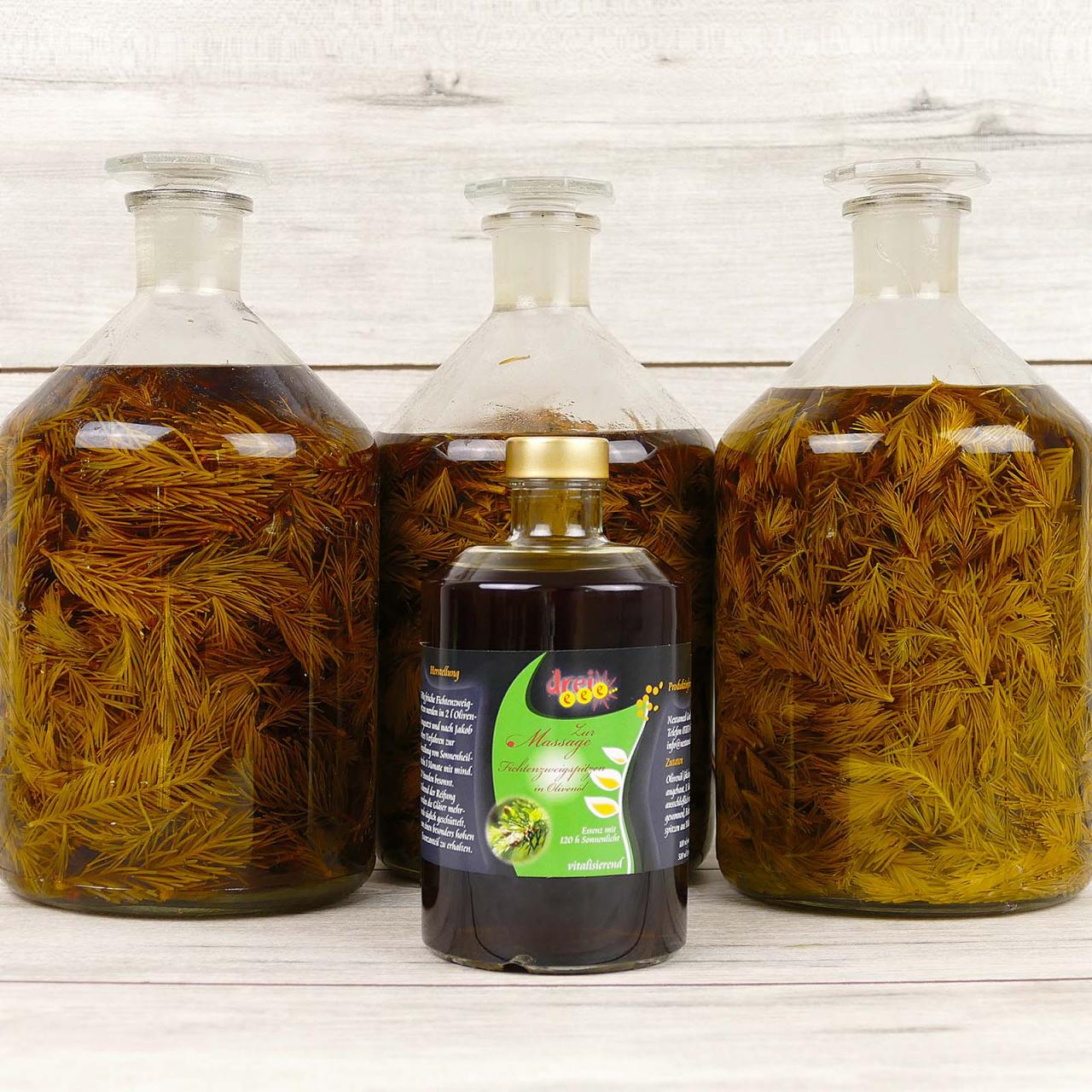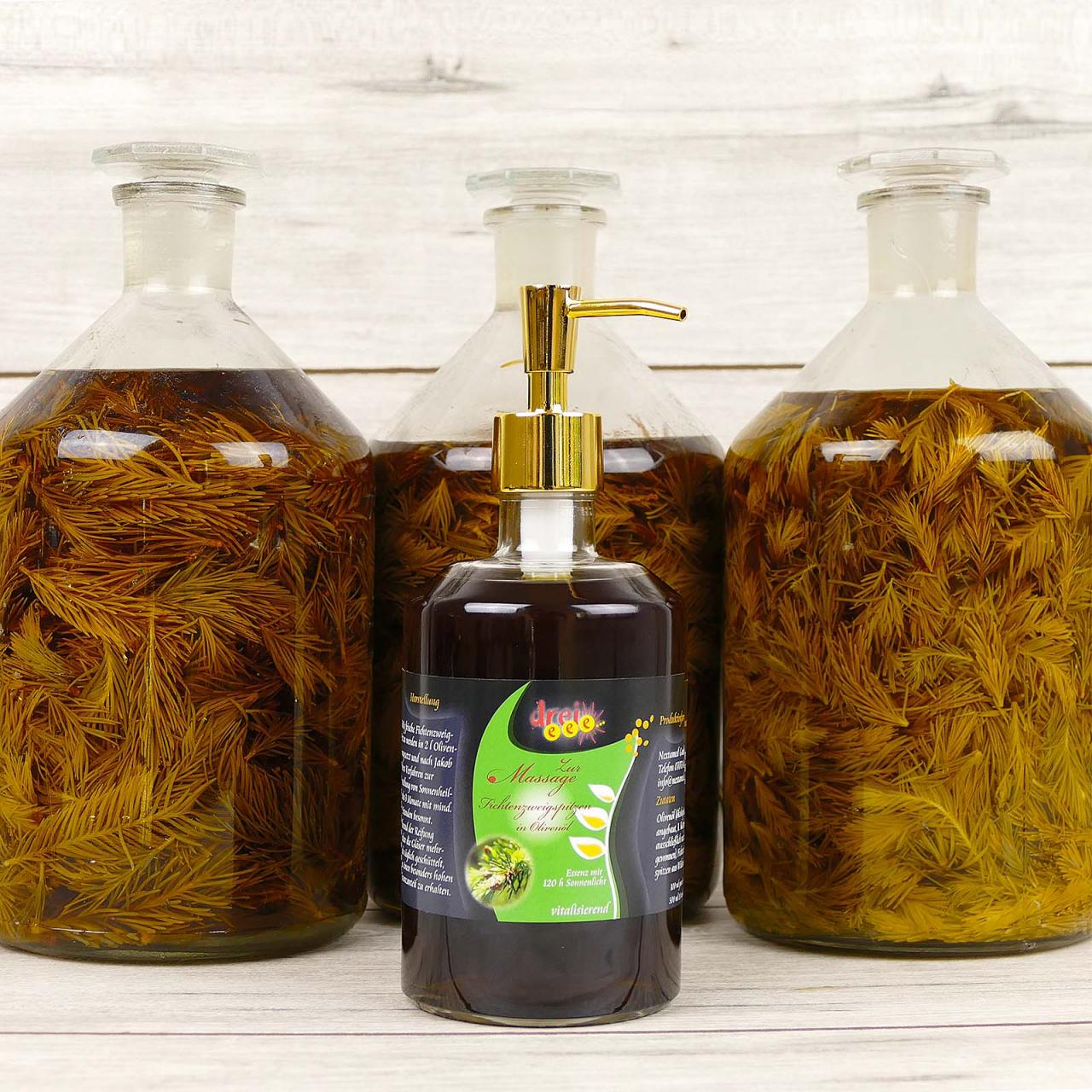 - 500ml Fichtenzweigspitzenöl – Essenz mit Olivenöl verdünnt (im Verhältnis 1:1)