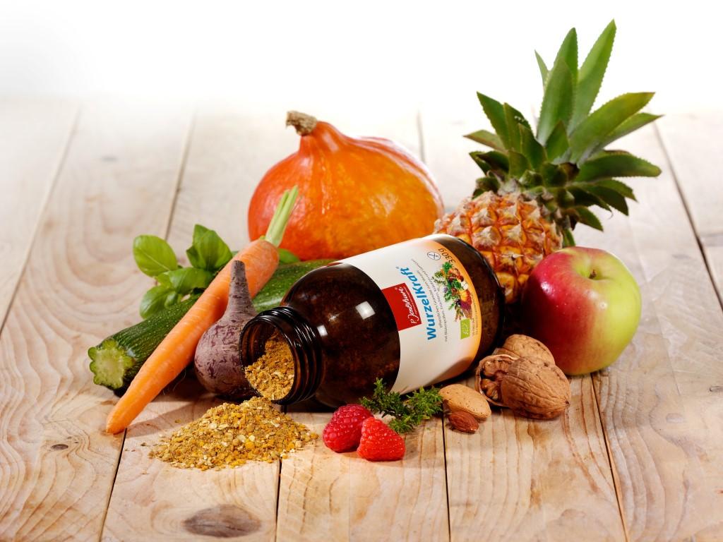 WurzelKraft, das Bio-Power-Granulat aus über 100 Zutaten von Blütenpollen, Früchten, Kräutern, Gemüsen und Gewürzen. Rezeptheft…