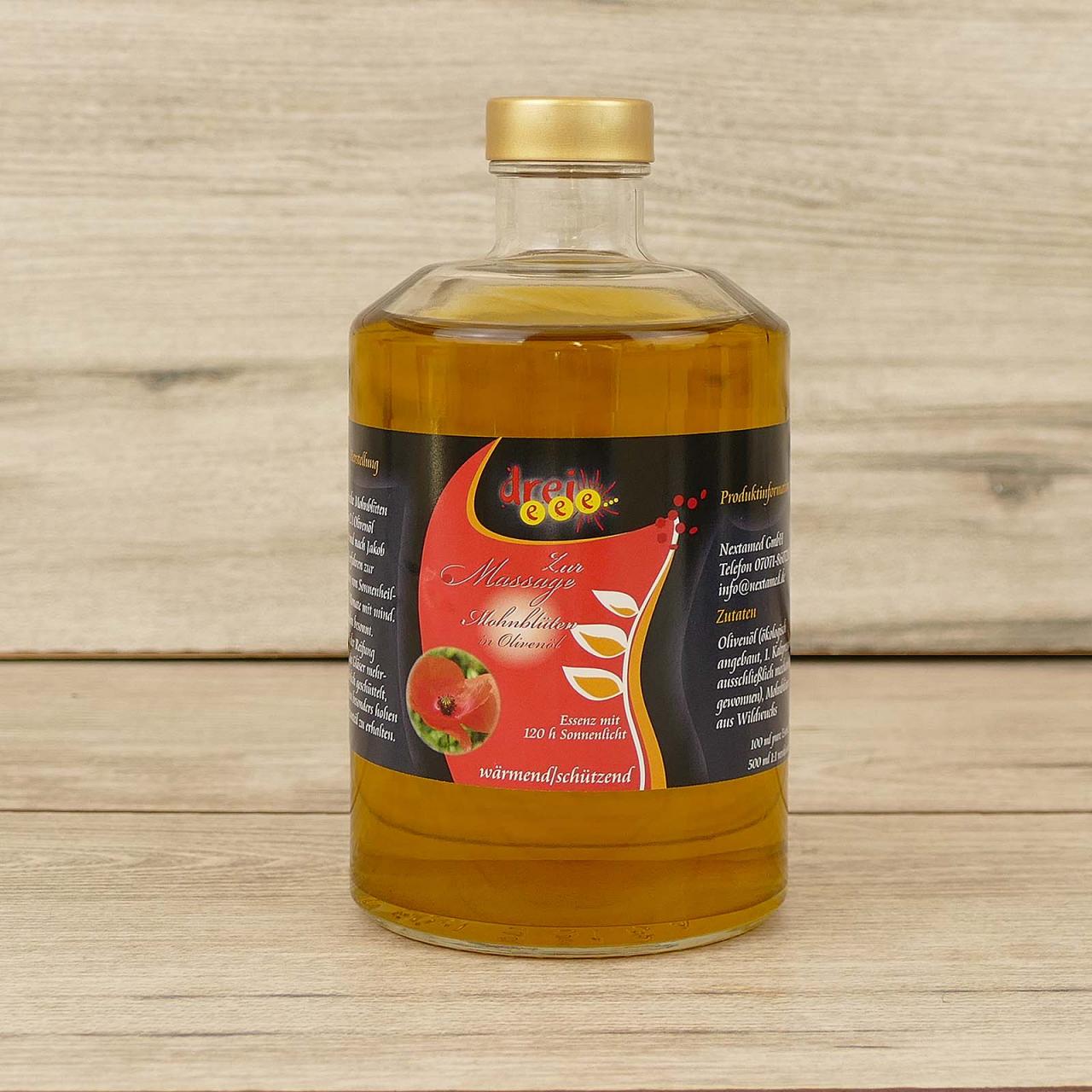 - 500ml Mohnblütenöl – Essenz mit Olivenöl verdünnt (im Verhältnis 1:1)