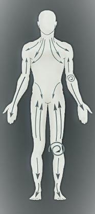 - von den Ellenbogenbeugen und von den Kniekehlen weg,