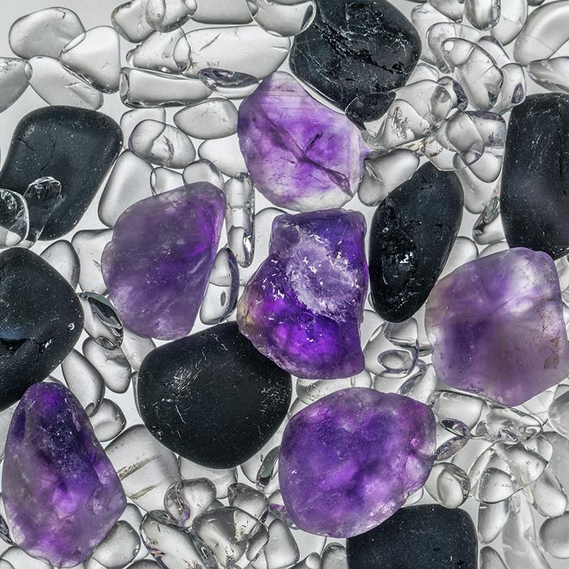 Amethyst und schwarzer Turmalin (Schörl) werden in zahlreichen Publikationen als die perfekten Begleiter beschrieben, um sich von negativen Anhaftungen zu befreien.
