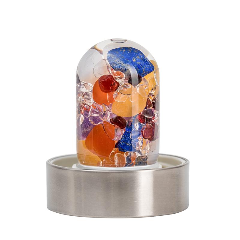 Mit dieser besonders farbintensiven Mischung feiern wir die weltweit enorm steigende Akzeptanz ganzheitlicher, alternativer Heilansätze: Gesundes Wasser für einen gesunden Geist! Die Komposition aus 7 verschiedenen Edelsteinen orientiert sich dabei an der ayurvedischen Lehre Dhatu der sieben Gewebegruppen des menschlichen Körpers und wurde in Zusammenarbeit mit einem der bedeutendsten Vertreter der modernen Steinheilkunde kreiert.