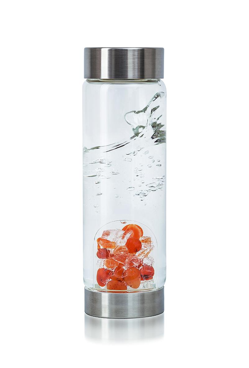 Mit dieser fröhlichen und ausdrucksstarken Mischung haben wir uns zum Ziel gesetzt, in Ihnen einmal mehr die Leidenschaft für lebendiges Wasser zu wecken! Diese einzigartige Kombination besteht aus leuchtend orangenem Karneol – “Lebensstein” für die alten Ägypter – und Halit, dem „Salz der Könige”. Bereits Hildegard von Bingen nutzte Karneol intensiv für zahlreiche Behandlungen. Nehmen Sie die Freude, die von dieser wunderschönen Mischung ausgeht mit jedem leidenschaftlichen Schluck Edelsteinwasser in sich auf.